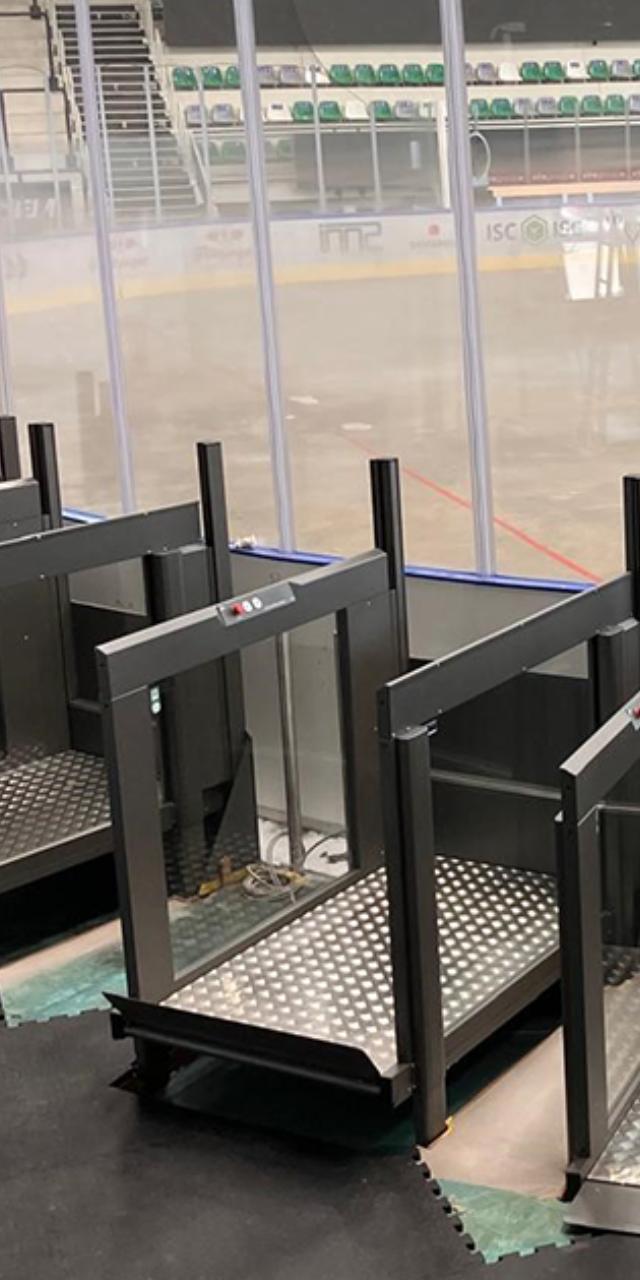 Specialtilpasset Easylift skaber 8 kørerstolspladser på ishockeystadium i Rosenheim.