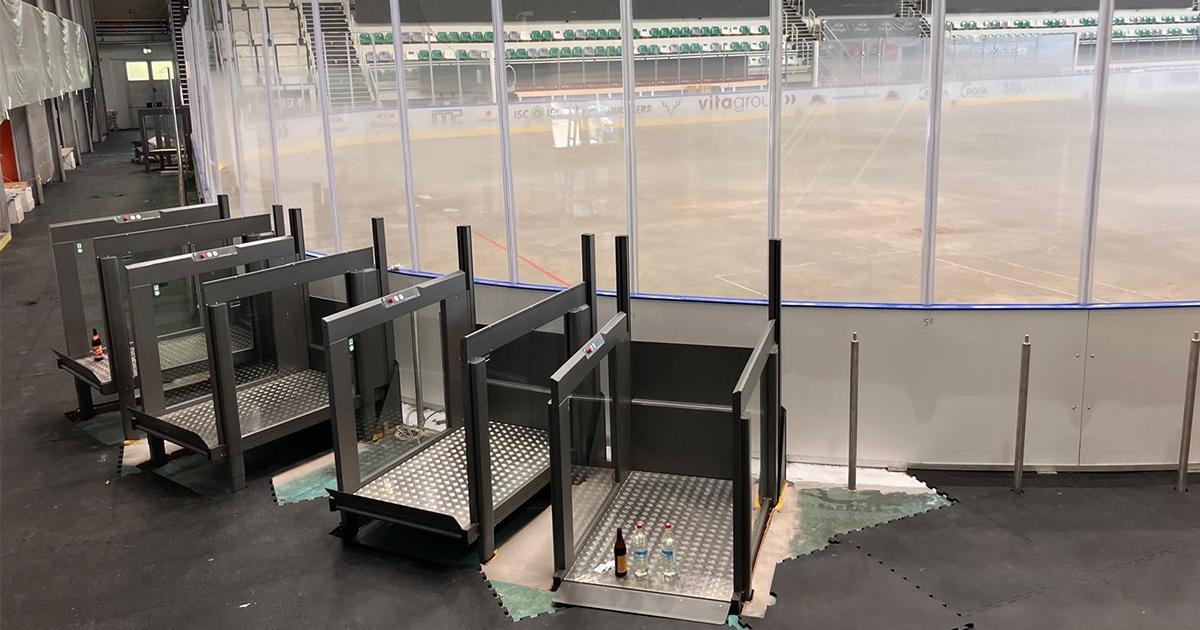 A custom-made EasyLift ensures 8 wheelchair spaces in the ice hockey stadium.
