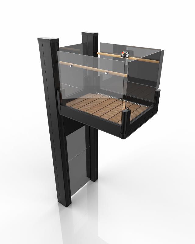 To achieve perfect design chorence, the lift's handrails can be ordered in any RAL color on request (standard: brushed stainless steel).