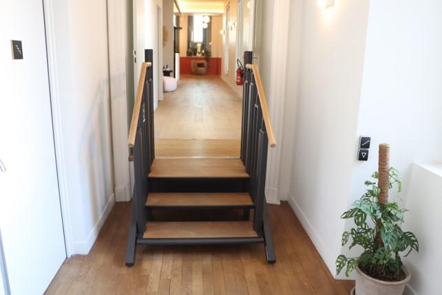 The FlexStep stairlift is designed to function both as an ordinary staircase and as a wheelchair lift. Developed and manufactured by Liftup, the FlexStep is flexible and equally useful for pedestrians and wheelchair users alike. FlexStep is an innovative 2-in-1 solution and saves space compared to installing both a flight of stairs and a separate lift.