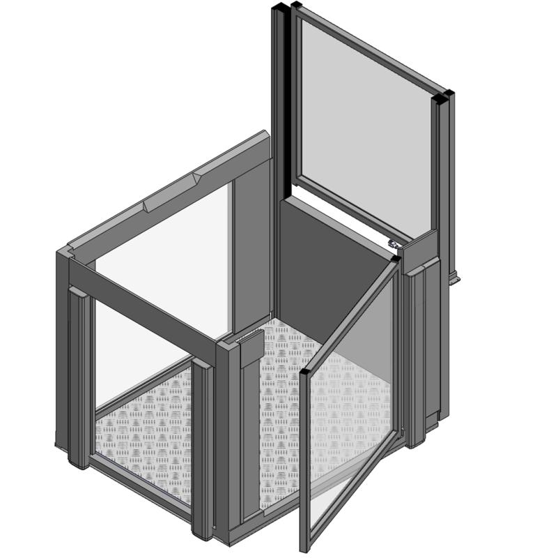 L’EasyLift 1100 est la plateforme la plus spacieuse avec des dimensions maximales de 1400 x 1100 mm. Contrairement aux modèles plus étroits, ce modèle inclut la possibilité d’ajouter du verre de sécurité (verre feuilleté trempé) dans les panneaux latéraux et les portes, ainsi qu’un verrouillage de porte aux niveaux supérieur et inférieur.