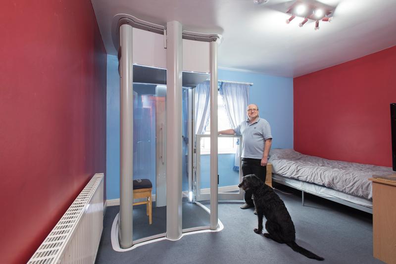 Det ergonomiske design af den prisvindende Stiltz elevator er i høj kurs både blandt professionelle sundhedspersoner og slutbrugere. Den enkle og intuitive styring er en ekstra gevinst for Steve på grund af hans nedsatte syn og mobilitet. Han foretrækker at sætte sig på sin stol og bruge fjernbetjeningen. Steve kan åbne døren helt problemløst, og det usynlige lysgardin over døren sikrer, at elevatoren stopper, hvis den støder på en forhindring. Den elektrisk styrede kørsel er fuldstændig jævn, hvilket er vigtigt for Steve og hans balance, og mekanismerne kører stort set lydløst. I det hele taget var processen omkring erhvervelsen af elevatoren med offentligt tilskud en positiv oplevelse for Steve. Han skulle have det offentlige tilskud på plads, men han fik uvurderlig hjælp fra Stiltz.