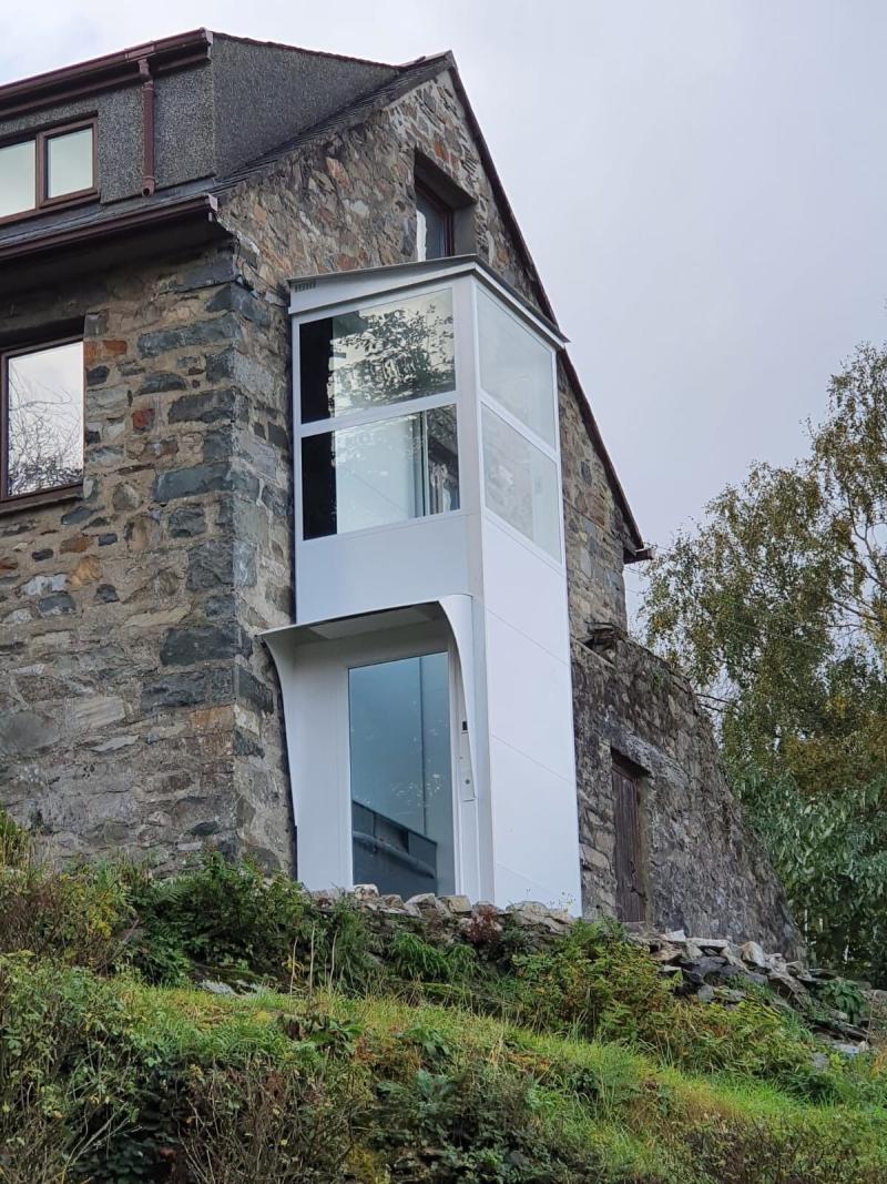 Liften leveres i moduler med alt, hvad du behøver til installationen, inklusive en færdiglavet skakt i stål eller glas. -