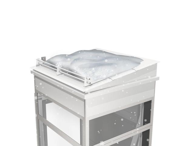 - Skråt udendørstag, som beskytter liften mod regn og sne.