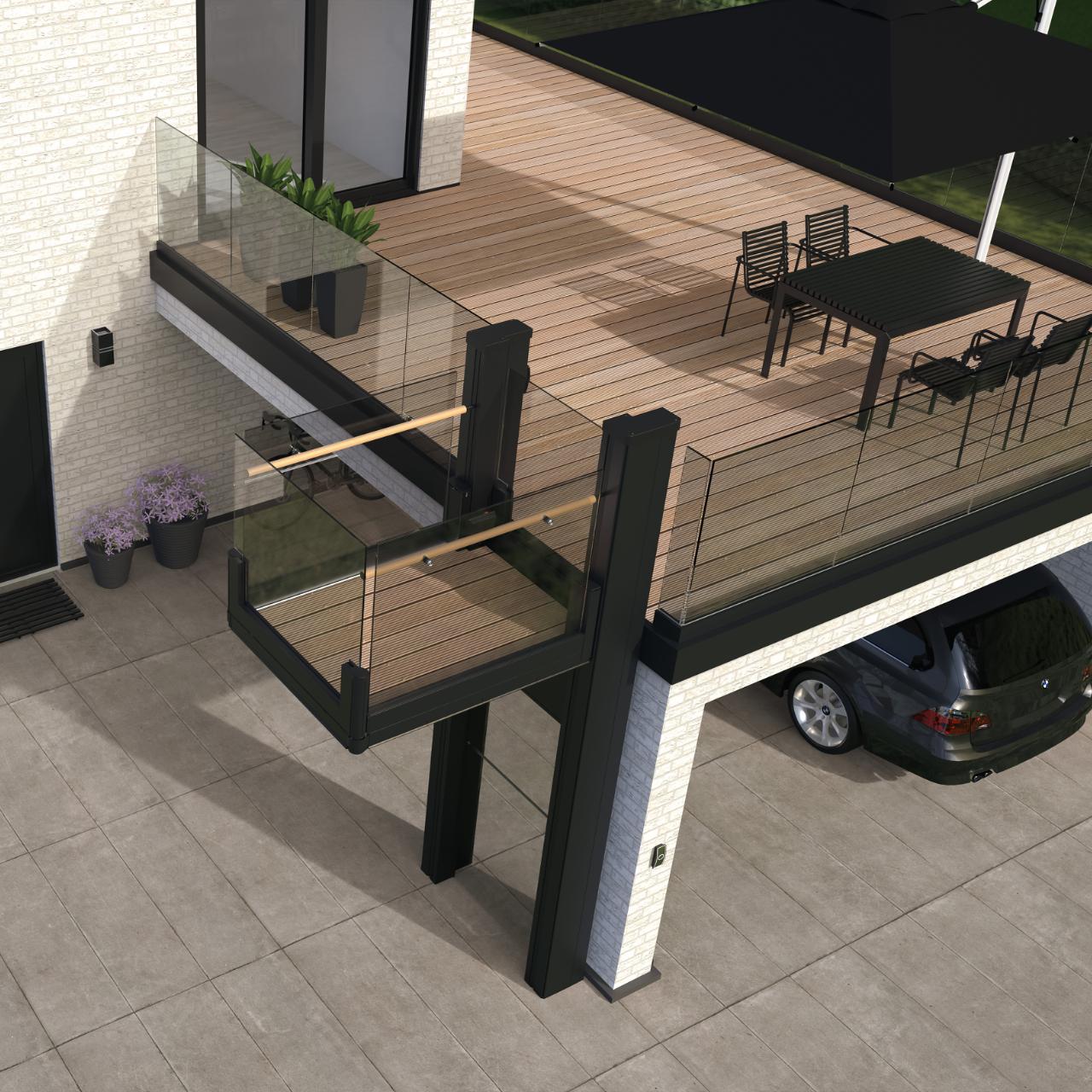 EleNors gulvbrædder, der kan specialtilpasses, går problemfrit i ét med terrassen og sikrer, at gulvet matcher terrassen og danner en harmonisk enhed. EleNors patentanmeldte løfteplade spiller en afgørende rolle i dens sikkerhedssystem. Når EleNor installeres i en indkørsel, bliver betydningen af denne løfteplade tydelig, da den hjælper med at forhindre, at personer eller genstande kan komme i klemme, når de lejlighedsvis befinder sig under liften. Et tryk på løftepladen aktiverer en nødstopmekanisme, som effektivt minimerer risikoen for personskade.