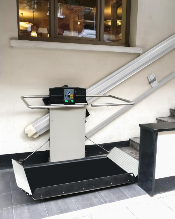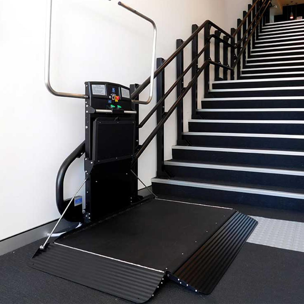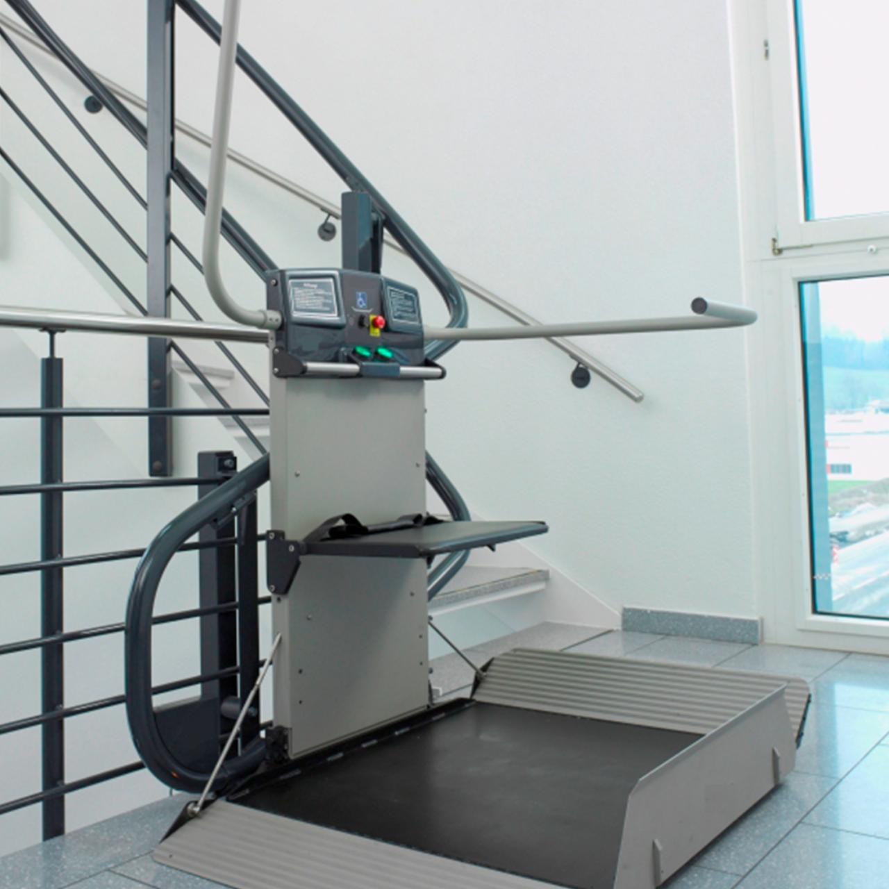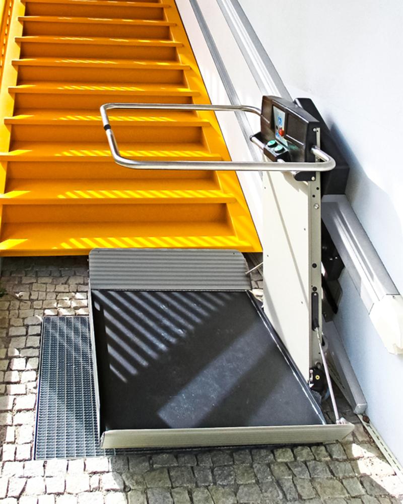 Disse trappelifte med platform til kørestole er kompakte og robuste, hvilket gør dem velegnede til offentlige bygninger såvel som til private boliger.