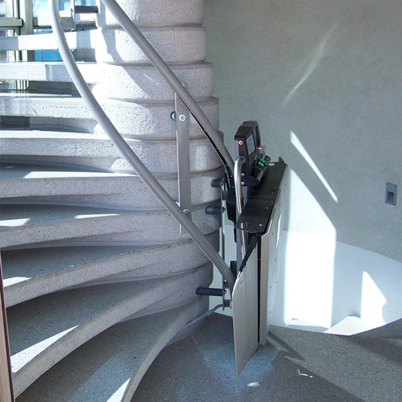Artira er en alsidig platformslift til alle slags trapper lige fra ligeløbstrapper til sving- og spindeltrapper. Den kan installeres indendørs men også udendørs, da varmgalvaniseret behandling sikrer modstandsdygtighed mod vind og vejr.