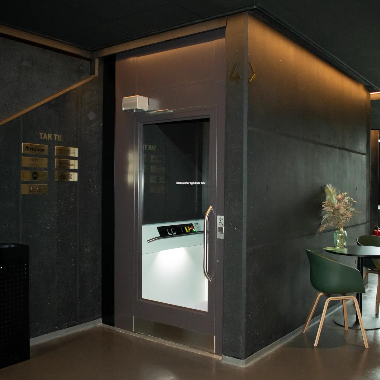Det er en stor oplevelse at besøge Palads Teatret. En specialdesignede Motala elevator er installeret i bygningen, og passer perfekt ind i omgivelserne. For at bevare den atmosfære, der er til stede på Palads, i form af rummenes detaljer og farve på væggene, har det været af høj prioritet for ejeren, at elevatoren fik nøjagtig samme mørkegrå farve, som den der er gennemgående i resten af biografen. Elevatoren passer derfor perfekt ind i omgivelserne og fremstår elegant integreret i rummet, uden at skille sig ud.