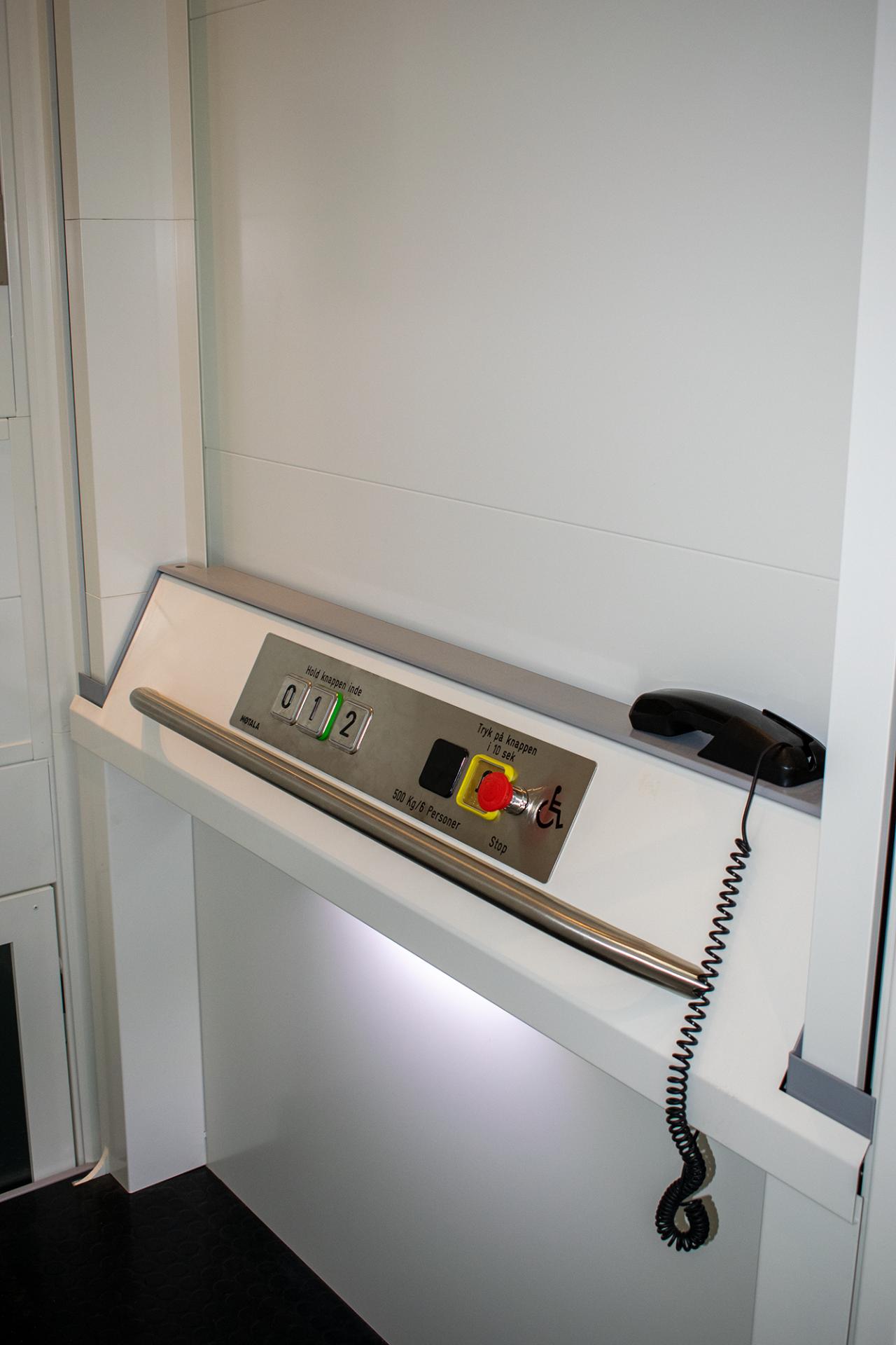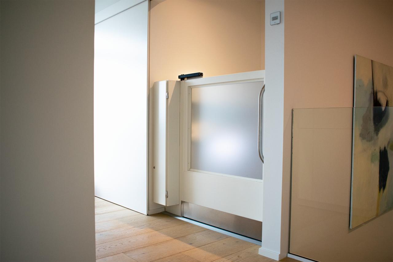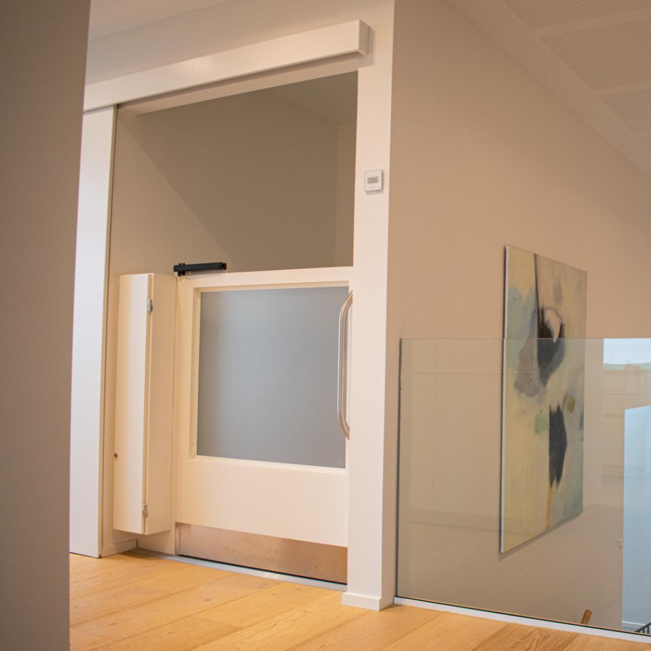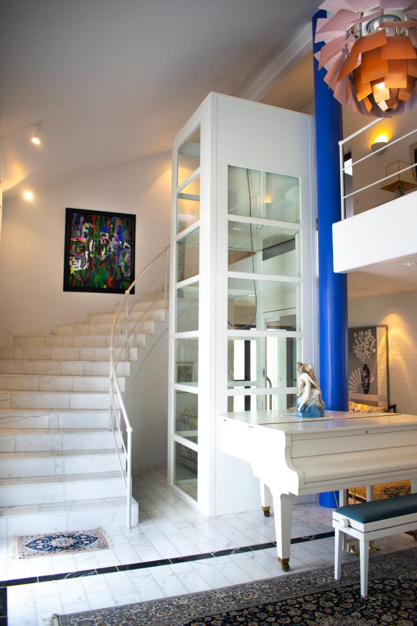 Elevatoren skulle ikke bruges dagligt af husstandens beboere, og familien lagde vægt på, at den skulle være diskret og velintegreret i husets øvrige arkitektur. Her blev Motalas stilrene design med matteret glas valgt som den bedste løsning.