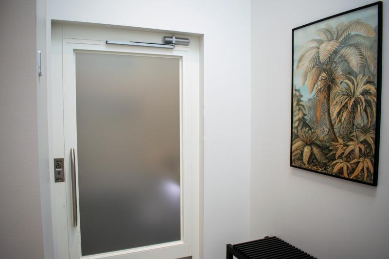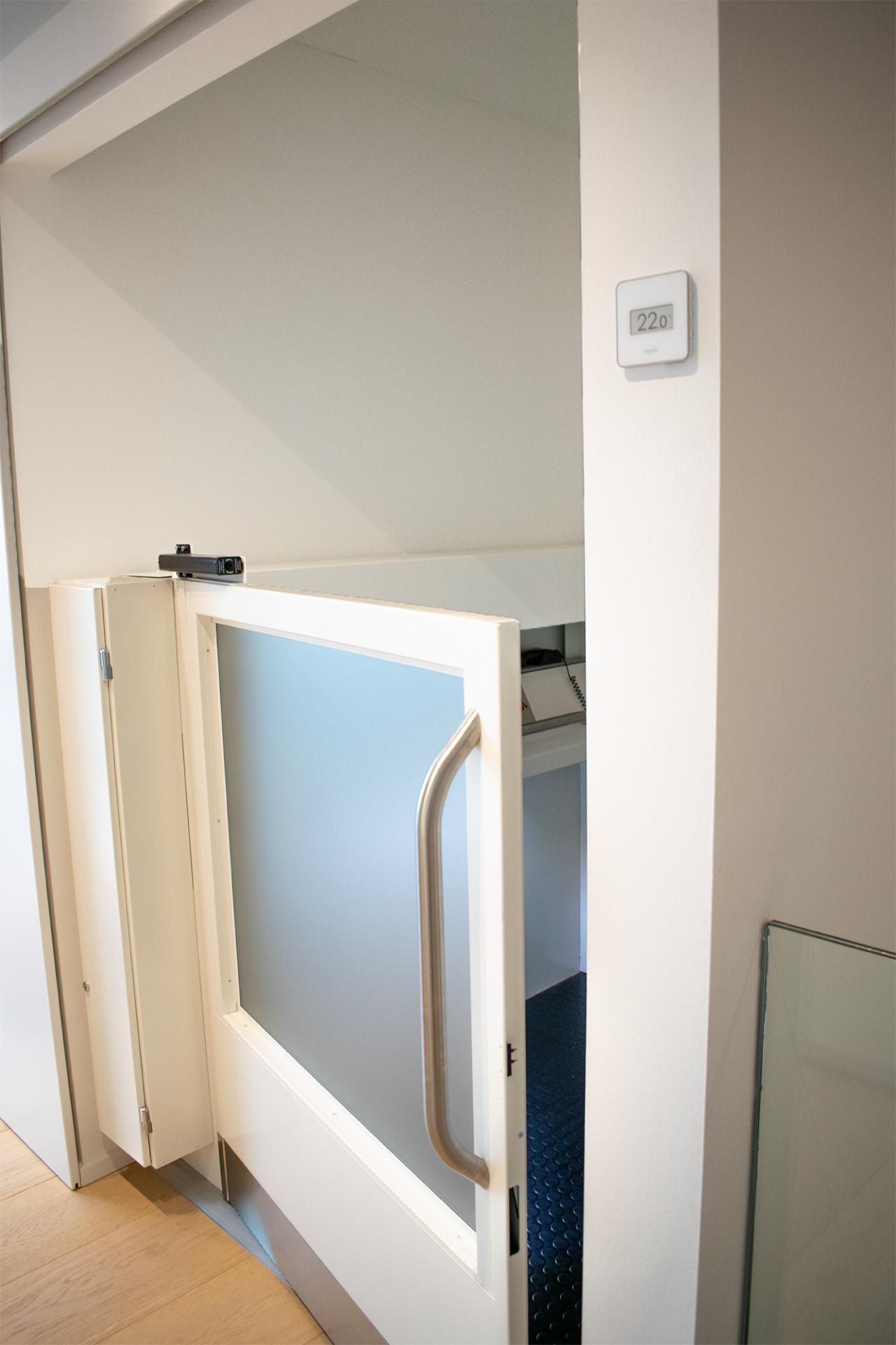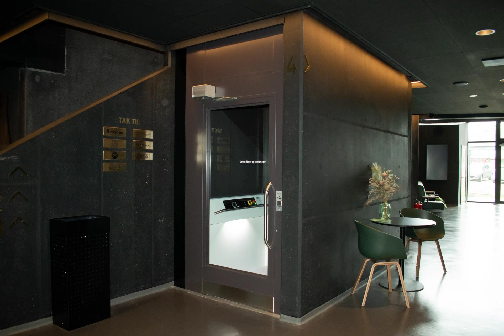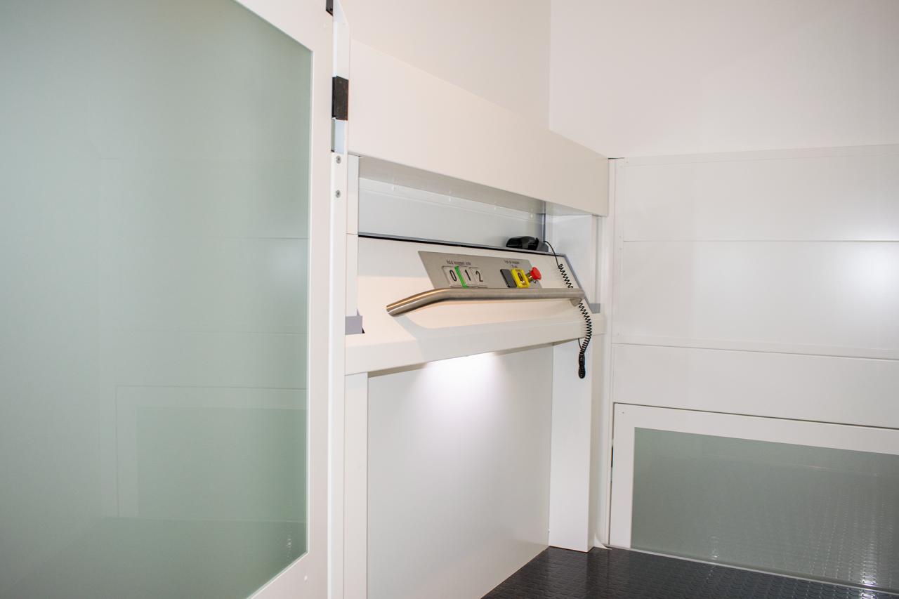 Elevatoren skulle ikke bruges dagligt af husstandens beboere, og familien lagde vægt på, at den skulle være diskret og velintegreret i husets øvrige arkitektur. Her blev Motalas stilrene design med matteret glas valgt som den bedste løsning.
