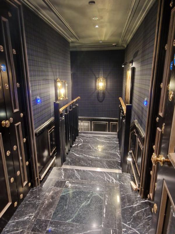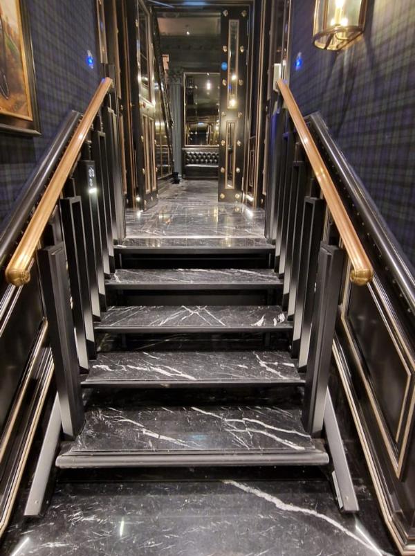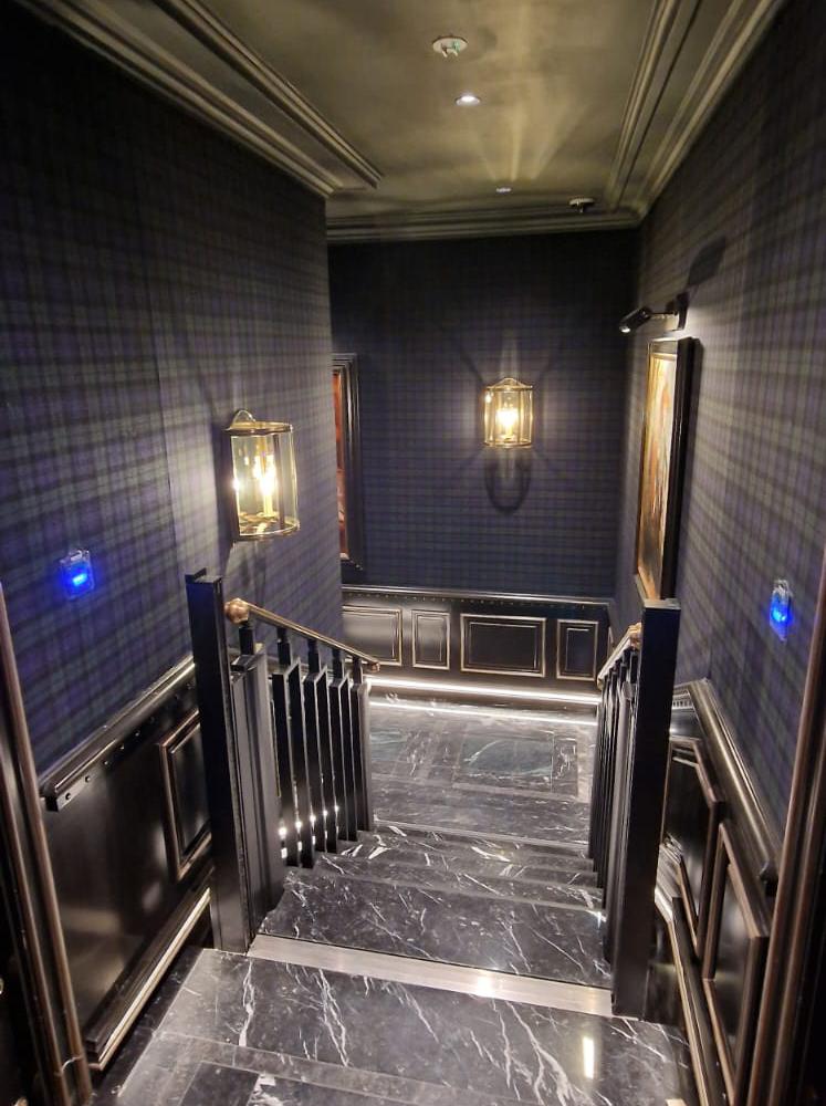 Words are unnecessary. Simply enjoy the expression of custom-made solid brass handrails and marble steps in the beautiful narrow corridor.